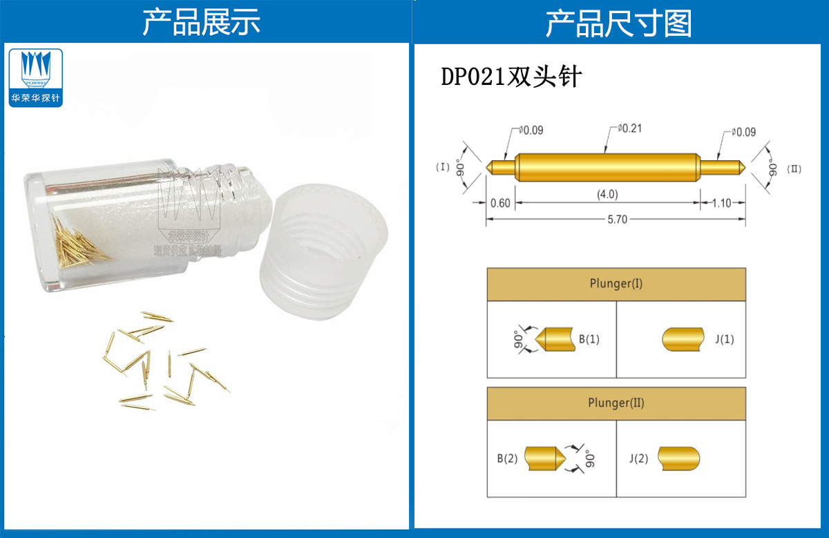 產品頭型:探針外徑為0.21mm,總長度為5.7mm